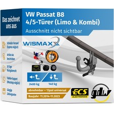 ANHÄNGERKUPPLUNG für VW Passat B8 ab 14 abnehmbar GDW +7pol ESatz ECS