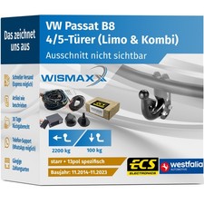 ANHÄNGERKUPPLUNG für VW Passat B8 ab 14 starr WESTFALIA +13pol E-Satz ECS
