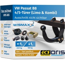 ANHÄNGERKUPPLUNG für VW Passat B8 14-23 starr ORIS +13pol E-Satz ECS spezifisch