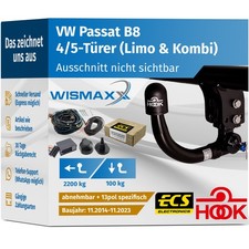 ANHÄNGERKUPPLUNG für VW Passat B8 ab 14 starr HOOK +13pol E-Satz ECS