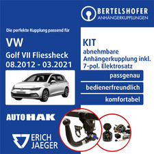 Für VW Golf 7 Typ 5G1 Anhängerkupplung abnehmbar +eSatz 7pol uni 08.12-03.21 NEU