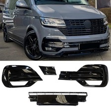 für VW T6.1 Bj. 19-24 Schwarz Glanz Gitter Frontstoßstange unten + Seitengitter