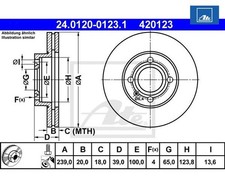 2 St. Bremsscheibe ATE 24.0120-0123.1 für VW Golf II Passat