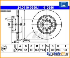Bremsscheibe ATE 24.0110-0356.1 für FORD SEAT SKODA VAG, Hinterachse