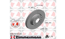 2x Zimmermann 600.3233.20 Bremsscheiben Ø 280 mm vorne für AUDI SEAT SKODA VW