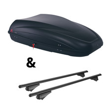 Dachbox G3 Arjes 480 + Dachträger Menabo Sherman für VW Golf 7 Sportsvan Typ AM1