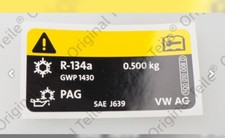 Original VW Golf Passat Kennschild für Klimaanlage Kältemittel R134A 5Q0010008D