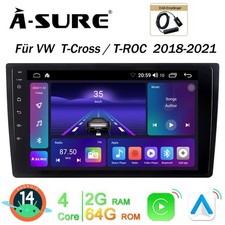 DAB+ 2+64G Android 14 Autoradio WiFi Carplay Navi für VW T-Cross T-ROC 2018-2023