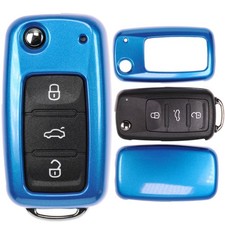 Klapp Schlüssel Hülle Blau für VW UP Golf Polo Seat Ibiza Skoda Octavia Yeti