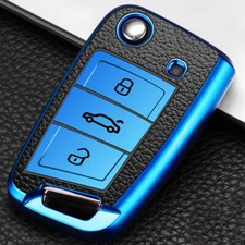 KEYLESS Auto Schlüssel Hülle BLAU für VW Arteon T-Roc Passat B8 Skoda Superb