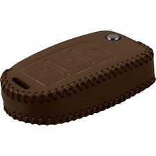 Echtleder stitched Schlüssel Hülle VW Touareg 3-Tasten hellbraun Klappschlüssel